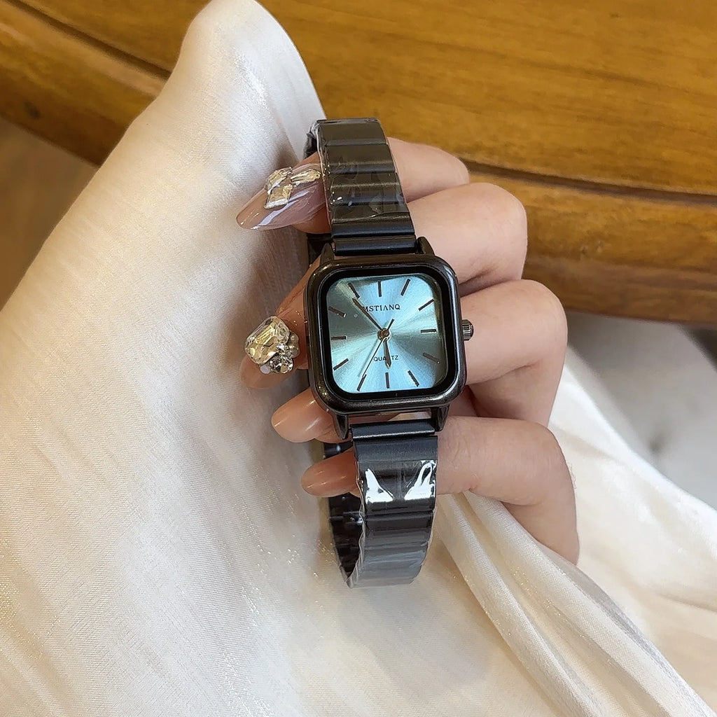 Luxury Niche Design Square Quartz Watches for Women Exquisite Black Strap Exquisite Ladies Wristwatches Personalized Clock Gifts